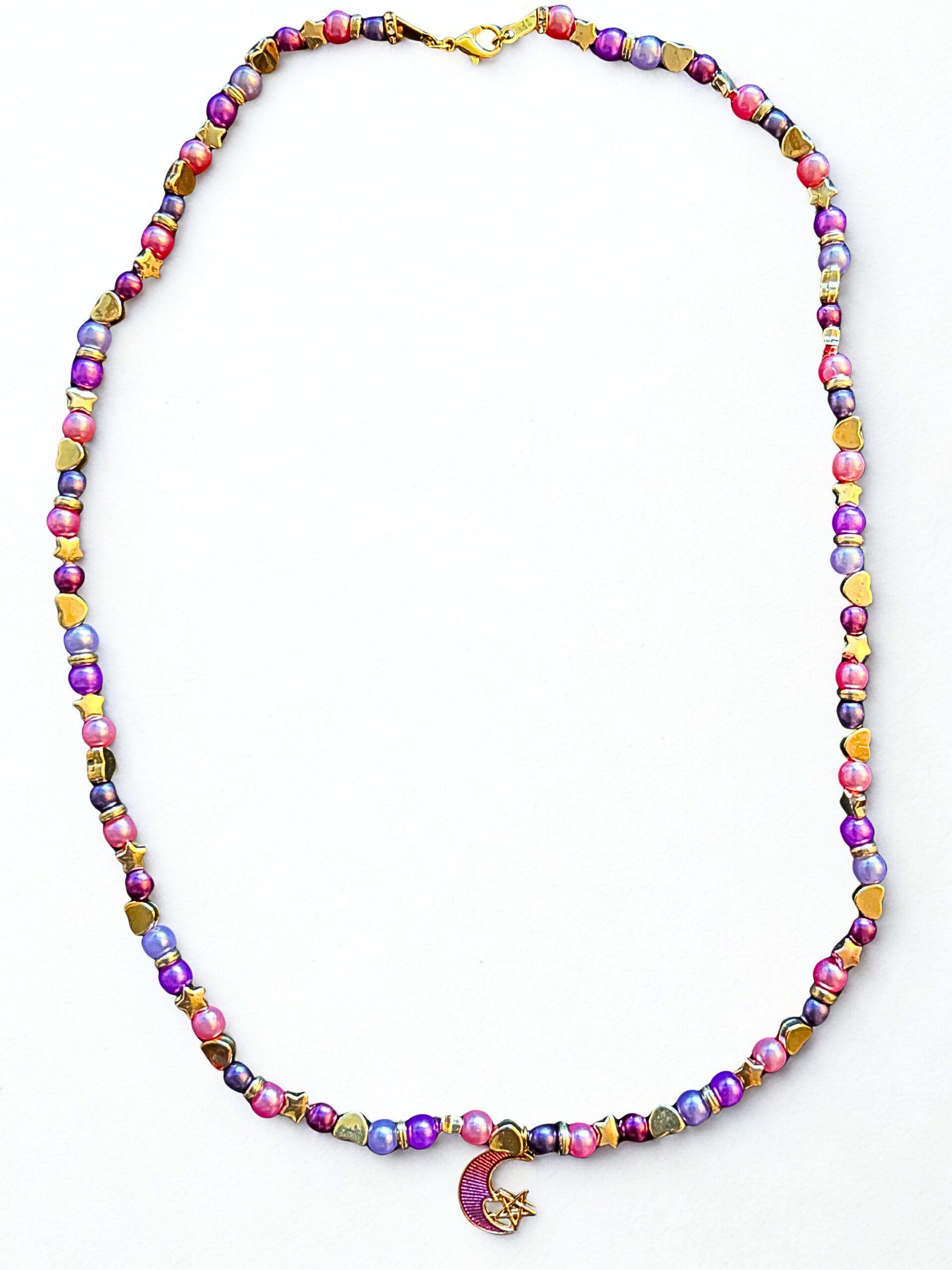 "Adorable hypoallergenic gold-plated necklace featuring a charming moon and star heart design!"